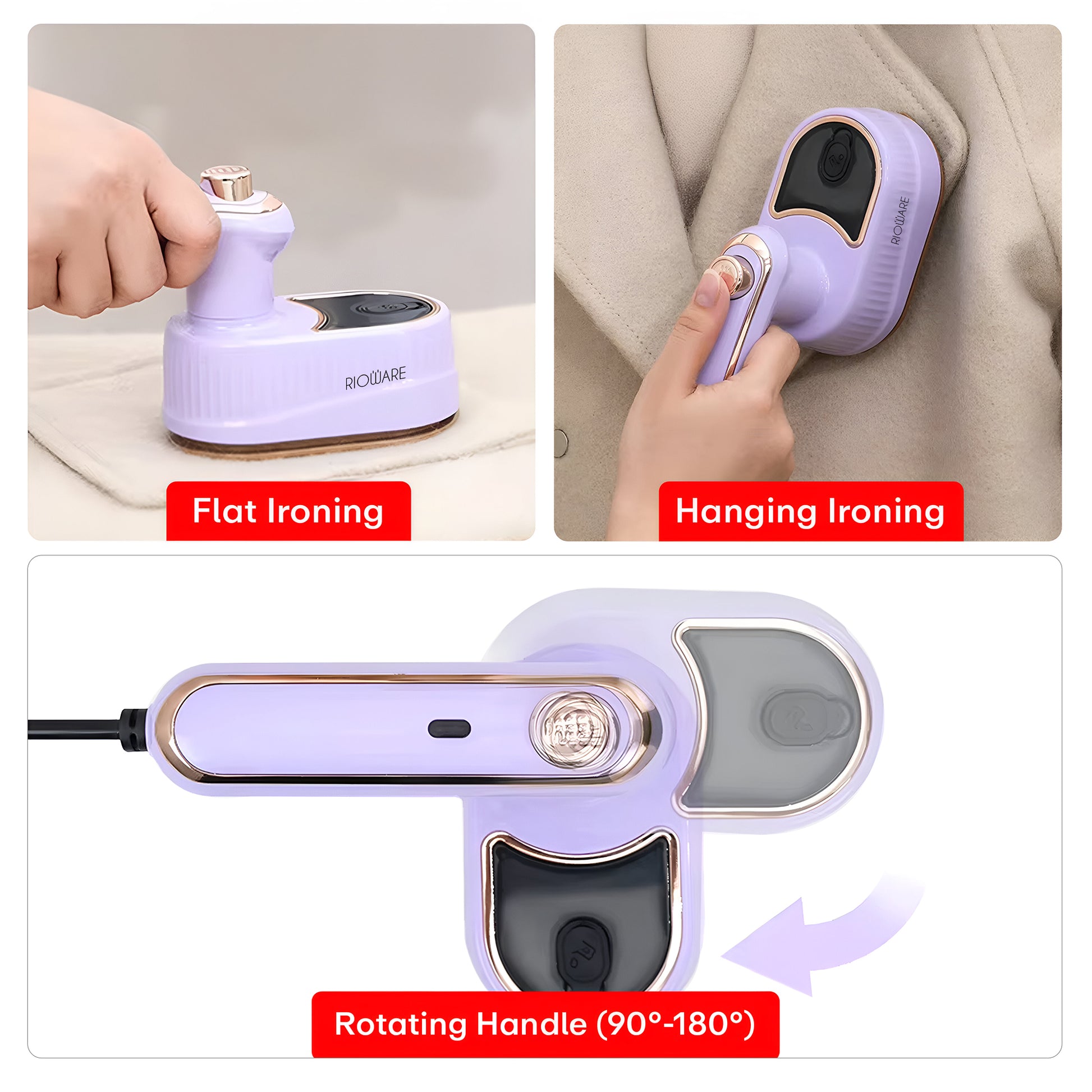 180° Foldable Handle – Easy to switch between flat ironing and vertical steaming.