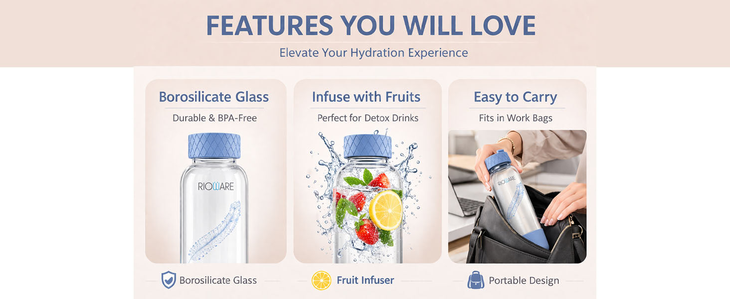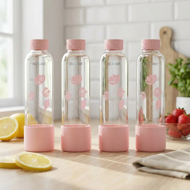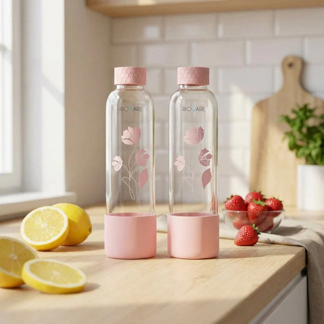 The Rioware Borosilicate Glass Water Bottle is designed for safe, stylish, and eco-friendly hydration. Made from premium borosilicate glass, it is stronger, scratch-resistant, and stain-proof compared to regular glass bottles. This BPA-free and toxin-free bottle keeps your drinks pure without affecting their taste. The bottle features a protective anti-slip silicone sleeve that provides a comfortable grip and extra protection against accidental drops. With its leakproof lid, odor-free material, and dishwasher-safe design, it is perfect for everyday use at home, office, gym, or travel while helping you stay hydrated and reduce plastic waste.